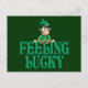 Ce design de St. Patrick's Day présente un joli petit leprechaun irlandais assis sur la légende "Feeling Lucky" en grand texte vert.