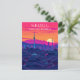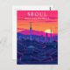 Découvrez la beauté électrique de Séoul avec cette carte postale de voyage audacieuse et contrastée. Cette illustration vibrante du coucher de soleil saisit l'horizon emblématique de la ville, de la tour futuriste Lotte World Tower aux toits historiques de Bukchon. Pleine de rose néon, de bleus profonds et de violets riches, cette oeuvre d'art moderne sert de fil à la fusion dynamique de la tradition et de l'innovation à Séoul. Un ajout frappant à toute collection d'art voyage