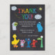 Montrez votre gratitude de façon joyeuse avec la carte postale Merci Rainbow Chalkboard de Sesame Street Pals. Avec Elmo, Cookie Monster, Big Bird et Abby Cadabby sur un arrière - plan dynamique de style tableau noir aux accents colorés d'arc-en-ciel, cette carte postale est parfaite pour envoyer des remerciements sincères après une fête sur le thème de la rue Sésame. Personnalisez-le pour ajouter une touche unique et réfléchie.