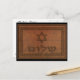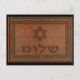 Comprend une "vieille sculpture sur bois" générée par ordinateur par un Magen David (Étoile de David), un texte lisant "Shalom" et une bordure florale.