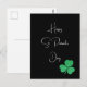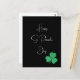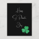 Avant : Design moderne en shamrock de trèfle irlandais noir et vert personnalisable avec votre propre message. Carte postale de la Saint Patrick pour les voeux de vacances. Cette carte vierge est idéale pour les invitations, les fêtes familiales traditionnelles irlandaises, les événements familiaux printaniers, les ventes et les événements VIP pour votre restaurant familial, pub ou affaires. Retour : Vide