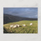 Un dessin photographique de mouflons gallois qui broutent sur la colline ensoleillée au moment où la pluie est sur le point de commencer.