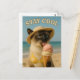 Carte Postale Siamese Cat lèche la crème glacée séjour cool