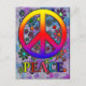 Carte Postale Signal de Paix Rétro Texte & Fleurs