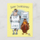 Une carte avec un drôle de dessin animé sur une vache et une dinde suppliant de manger plus de poulet. L'image et le texte peuvent être personnalisés.