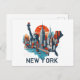 Belle et élégante carte postale new-yorkaise qui présente la silhouette de la ville américaine avec des gratte-ciel et des bâtiments. Grand souvenir de voyage et cadeau touristique.