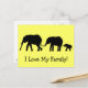 Silhouette de famille d'éléphants tenant des queues, marchant ensemble. Bonne et chaleureuse image. Avec l'expression "J'aime ma famille" (peut être customisé). Pour les amateurs d'animaux et de familles :)