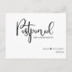 Doit reporter votre Mariage ? pas de problème, faites savoir à la famille et aux amis le changement de plan avec cette carte Postponement simple et élégante. Devant le mot Postponed dans le moderne avait écrit la typographie. De retour avec la zone de votre message, n'hésitez pas à changer de message pour répondre à vos besoins. Possibilité d'avoir un message du couple à des amis et à la famille ou des parents à leurs invités. Les détails de la typographie manuscrite dans le dos aussi. Ambiance moderne et élégante. Carte postale pratique, moins de gaspillage, moins de tracas. Également disponible en format carte.