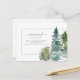 Nous avons déménagé Nouveau Home Script Pine Tree Green Nous avons déménagé Nouveau Home Script Pine Tree Green Postcard Ce design présente des pins aquarelles et des calligraphies de script personnalisées sur un arrière - plan simple.