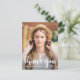 Typographie simple de remerciement blanc avec photo pleine face sur le devant, et un doux message de remerciement avec une étoile de david bleue et l'adresse de retour au dos de la carte postale.