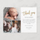 Ce Simple Script 3 Photo Collage Baby Carte de remerciements dispose d'or moderne calligraphie manuscrite merci et message personnel sur le front. Cliquez sur le bouton Personnaliser pour customiser ce design avec vos photos et vos détails.
