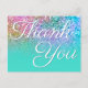 Carte Postale Sirène Turquoise Ombré Bokeh Paillettes Merci