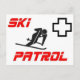 "Ski Patrol" écrit, autour d'un graphique de skieur, avec une croix de patrouille dans le coin droit.
