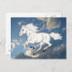 Mélange de médias. galops de chevaux blancs illustrés à travers un ciel nuageux (photo).