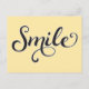 Envoyez un message pour leur dire Hi avec une de nos cartes postales personnalisées. Orné d'un arrière - plan jaune doux avec des lettres manuscrites le mot Smile sur le devant. Customisez le dos avec votre adresse. Consultez notre sélection complète de cartes de voeux dans notre boutique Zazzle!