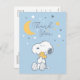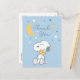 Envoyez un mot de remerciement vraiment personnel avec cette charmante carte postale de remerciement Peanuts Snoopy et Woodstock. Le recto présente l'illustration touchante "Over the Moon" avec Snoopy serrant Woodstock dans ses bras, sur un fond céleste bleu clair apaisant. Contrairement à une carte standard, le verso est conçu dans un style de carte postale classique, avec une zone désignée pour un message manuscrit et une adresse, ce qui permet aux parents d'écrire rapidement une note personnelle et sincère à chaque invité après la baby shower neutre ou pour un bébé garçon. C'est un moyen simple, beau et efficace d'exprimer votre gratitude.