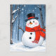Carte Postale Snowman dans la forêt froide avec foulard rouge