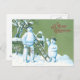 Temps père et fils ! Cette impression vintage de Noël représente un père et un fils de bonhomme de neige jouant dans la neige.