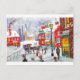 Carte Postale Snowman scène d'hiver folk art peinture nostalgiqu