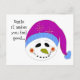 Un mignon bonhomme de neige portant un casquette violet aux accents de flocon de neige. Un gros grain et un nez de carotte verte le complètent. Le dicton peut être changé à volonté.