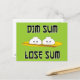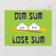 Une image de dessin de deux boulettes Dim Sum, une heureuse triste, sur une assiette avec des baguettes et l'expression "Dim Sum, Lose Sum" La couleur arrière du sol peut être changée, cliquez sur "Customiser", puis cliquez sur "Modifier" puis "Arrière - plan" et choisissez la couleur.