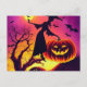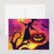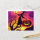 Carte Postale Sorcière d'Halloween dansant avec une citrouille a