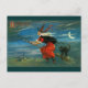 Une belle carte postale vintage Halloween avec une sorcière volante et un chat noir.