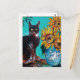 CARTE POSTALE SOUCHES AVEC CHAT NOIR EN TURQUOISE BLEUE