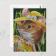 "Son Oeuf Favori - No. 3" Carte postale d'aquarelle de l'artiste Jean Weiner "Son Oeuf Favori - No. 3" présente une charmante souris de campagne le matin de Pâques. Elle porte son bonnet de printemps jaune préféré avec une fleur marguerite blanche et un ruban satiné avec des à petits pois jaunes. Cette souris a trouvé un oeuf caché de Pâques qui est décoré dans sa couleur préférée de jaune! L'oeuf est décoré dans un style floral marguerrier. Assurément pour égayer la journée de n'importe quel amateur de souris ! Faites plaisir à quelqu'un !