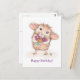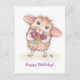 Carte Postale Souris avec bouquet de fleurs Joyeux anniversaire