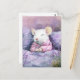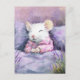 Une mignonne souris blanche dans des J.s. dort dans un lit avec de l'art imaginaire plante de lavande
