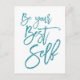 Donnez un coup de pouce à quelqu'un et envoyez-lui une carte postale avec un message d'encouragement! Ceci a des mots de motivation Be Your Best Self in blue faux parties scintillant contre un arrière - plan blanc qui peut être changé en une couleur différente si vous le souhaitez.