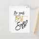 Donnez un coup de pouce à quelqu'un et envoyez-lui une carte postale avec un message d'encouragement! Ceci a des mots de motivation Be Your Best Self en or et noir contre un arrière - plan blanc qui peut être changé en une couleur différente si vous le souhaitez.
