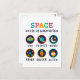 Playful space themed artwork made for curious kids and young students. Cute symbols like UFO, planet, moon, stars, rocket and alien help children explore space science and basic astronomy in a fun and friendly way.