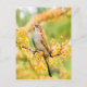 Un beau moineau assis dans de jolies fleurs jaunes sur cette magnifique carte postale.