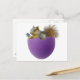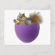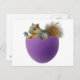 A squerrl sits in a purple eggshell holding a small blue flower. Send out this Spring postcard this Easter.