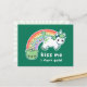 Super mignonne licorne verte qui sort des pièces d'or dans un pot heureux à la fin de l'arc-en-ciel.