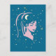 Un design romantique et surréaliste avec étoiles, lune et image femme.