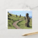 Photographie de ces mystérieuses statues de tête de l'île de Pâques, nichées sur une colline verdoyante, avec un petit sentier à proximité