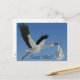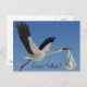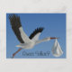 Cale en vol contre le ciel bleu en livrant un nouveau-né en paquet blanc. Une façon parfaite d'annoncer l'événement à venir ! Certaines versions de cartes ont "Devinez quoi ?" slogan...
