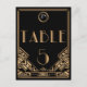 Une table de mariage d'inspiration exquise et vintage numéro 5 (cinq) avec un thème des années 1920 "The Great Gatsby" dans les tons noir et faux or. Un arrière - plan noir met en valeur la bordure de style Art déco géométrique et précise, dans les tons beiges dorés. Les monogrammes de Bride et Groom sont mis en surbrillance dans un cadre circulaire à l'aide d'une police de couleur gris argenté contrastée. Veuillez noter qu'un seul côté a une finition brillante car ce produit est imprimé sur le stock de carte postale.