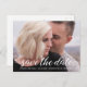 Customisez avec votre propre photo sur cette carte postale mariage "Save the Date" avec un script blanc élégant et moderne. Annoncez votre fiançailles, personnalisez le texte avec vos détails mariages à venir. Félicitation !