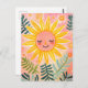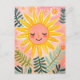 "Cette carte postale ludique présente un soleil souriant entouré d'un écran de rayons solaires et de petites fleurs, dressé contre un arrière - plan rose doux. Le visage du soleil est doucement fermé les yeux, dégageant une atmosphère paisible et joyeuse. Cette carte est parfaite pour envoyer des pensées positives, des notes gaies, ou tout simplement égayer la journée de quelqu’un avec une touche d’art fantaisiste.