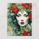Une belle femme et des fleurs de poinsettia festive IA généré art