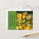Faites la promotion de votre marché fermier local avec ces cartes postales qui vous permettent de personnaliser le texte avant avec le nom du marché/ville. "Support your local Farners' Market ____" Image de divers courges orange et jaune dans une poubelle fourre-tout.