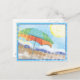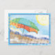 Une belle carte pour se souvenir des excursions à la plage avec le soleil brillant et le parapluie coloré.