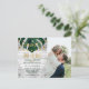 Elégante, rustique, et campagne plage tropicale Swiss Cheese Monstera feuilles sur bois blanc rustique et dentelle avec fausse impression feuille d'or typographie été Enregistrer le mariage de date Cartes postales. Ce design classique et sophistiqué est parfait pour le couple marié branché et élégant. Personnalisez avec votre propre message sur l'avant ainsi qu'avec un premier monogramme customisé sur l'arrière. Toute la conception d'impression photo.