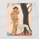 Style Art Déco Illustration d'une jeune femme en tenue d'automne élégante avec une hache à côté d'un arbre aux couleurs d'automne par George Barbier. George Barbier 1882 - 1932 fut l'un des grands illustrateurs français du début du 20ème siècle. Il est bien connu pour ses commandes de conception de costumes de théâtre et de ballet.