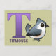 Un mignon Tite Tufted Birdorable perches par une lettre violette T. Vous pouvez totalement customiser ce cadeau! Déplacez le design, changez la couleur ou le style arrière - plan, ajoutez votre propre texte ou vos propres images — faites-le vous-même !
