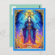 Postcard in an illustration of The Magician tarot card symbolizing manifestation, power, and divine connection. Clad in radiant robes and framed by elemental fire and celestial light, he channels energy between heaven and earth. The infinity symbol above represents limitless potential and mastery. He embodies the will to create one’s own reality.